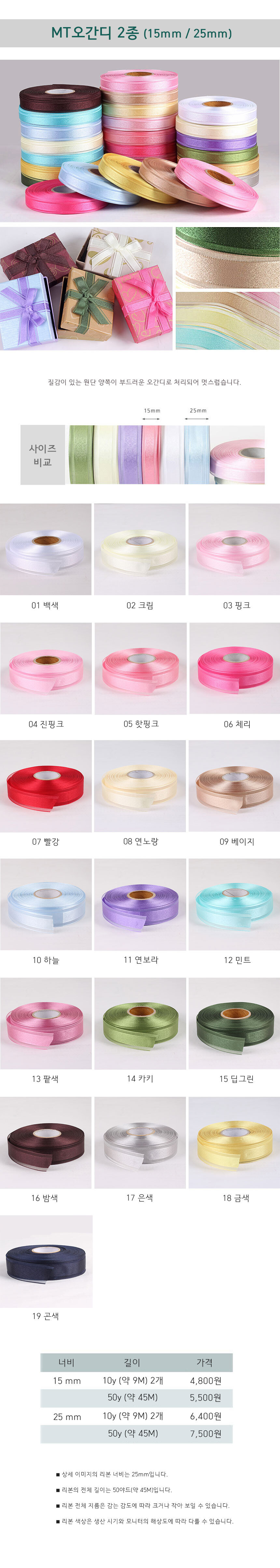 너비&길이 옵션 선택 15mm(45메타) 25mm(45메타)